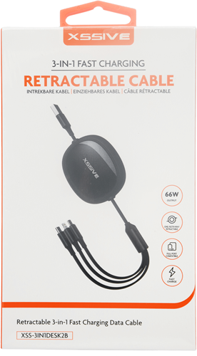 Xssive 3in1 Retractable Fast Charging Cable XSS-3IN1DESK2B – Zwart
